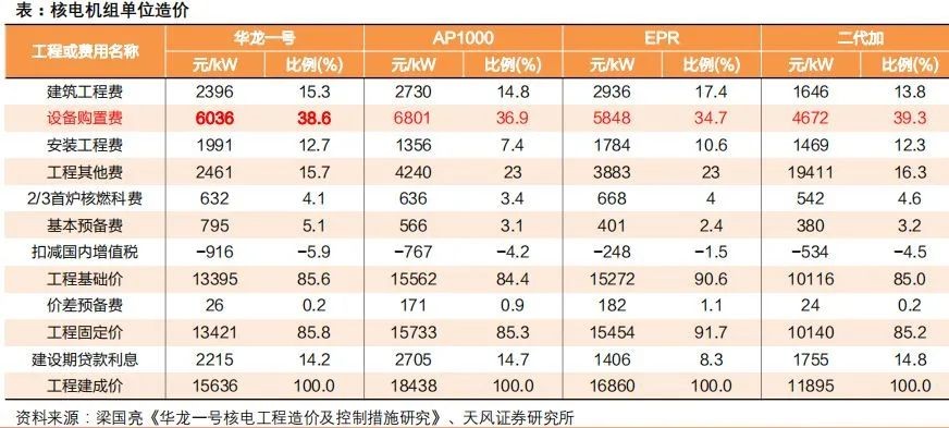 我們按照每年10臺“華龍一號”核電機組的設備招標量,每年核電設備市場預計達724億元。? 裝機容量:按照“華龍一號”120萬千瓦標準計算,10臺機組需招標1200萬千瓦配套設備;? 設備購置平均單價:根據中國核電網,“華龍一號”設備購置費為6036元/kW,占工程建成價的38.6%。
