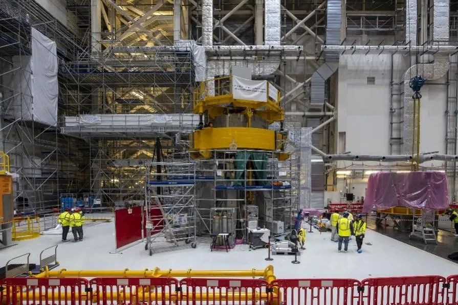 近期,ITER項目部正在開展中央螺線管磁體系統(CS)的組裝工作。總計6個CS模塊及組裝平臺完成組裝后將超過20米高,當前第一個CS模塊已經在組裝平臺就位。