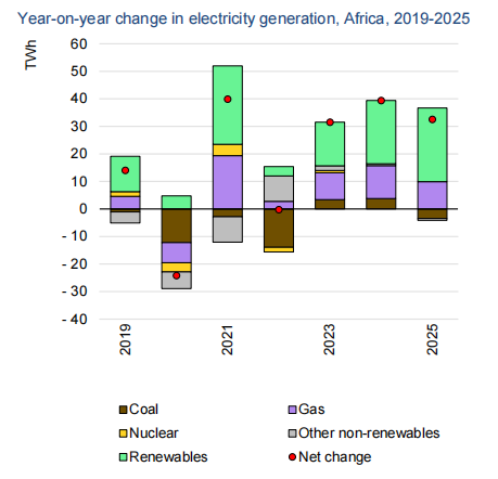 非洲電力需求2022年同比增長1.5%,低于國際能源署此前預(yù)測的4%,原因是俄烏沖突導(dǎo)致能源價格上漲和通貨膨脹高企,以及南非實施了大規(guī)模限電措施。2022年非洲地區(qū)總發(fā)電量中,天然氣占比42%,煤炭占比27%,可再生能源占比24%,石油占比5%,核能占比1%。預(yù)計2023年非洲電力需求將同比增長3%以上,2024年和2025年增長率平均為4.5%左右。到2025年,該地區(qū)可再生能源發(fā)電量占比將增至30%,燃煤發(fā)電量占比將下降至24%。