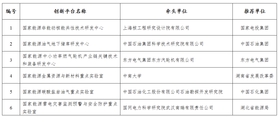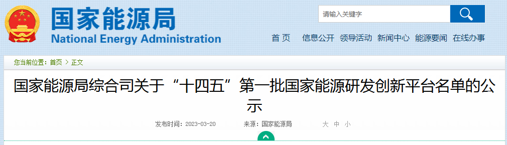國家能源局綜合司關于“十四五”第一批國家能源研發創新平臺名單的公示