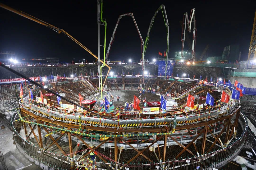 為順利實(shí)現(xiàn)這一重要里程碑節(jié)點(diǎn),上海核工院立足經(jīng)驗(yàn)反饋,深耕創(chuàng)新理念,不斷優(yōu)化施工邏輯和技術(shù)方案,在結(jié)構(gòu)施工關(guān)鍵路徑上節(jié)省工期約25天;此外通過提前引入CR10模塊,為本次合并澆筑創(chuàng)造了良好先決條件,也為混凝土養(yǎng)護(hù)期間鋼制安全殼底封頭下部鋼筋綁扎工作提供了有利條件,便于后續(xù)吊裝工作的開展與推進(jìn)。
