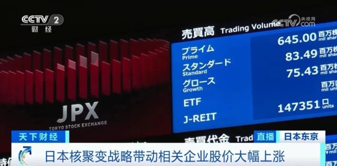 由于可控核聚變具有解決能源問(wèn)題的巨大潛力,因此成為了全球關(guān)注的前沿技術(shù)。日本敲定核聚變能源開發(fā)戰(zhàn)略方案的消息公布后,昨天多家相關(guān)日本企業(yè)的股價(jià)大幅上漲。其中,開發(fā)核聚變反應(yīng)堆高熱負(fù)荷機(jī)器的一家企業(yè)東邦金屬甚至漲停,漲幅達(dá)到21%。