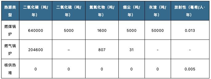 目前,我國大部分地區(qū)冬季取暖主要使用的是燃煤,導(dǎo)致該地區(qū)霧霾困擾大。而核能供熱僅僅產(chǎn)生微量的放射性物質(zhì),不會產(chǎn)生二氧化碳、二氧化硫、氮氧化物、煙塵、灰渣等排放物,如功率為400MWt的熱源,核能供熱將產(chǎn)生0.005毫希/人·年的放射性物質(zhì),與燃煤鍋爐產(chǎn)生的0.013毫希/人·年的放射性物質(zhì)相比偏低。