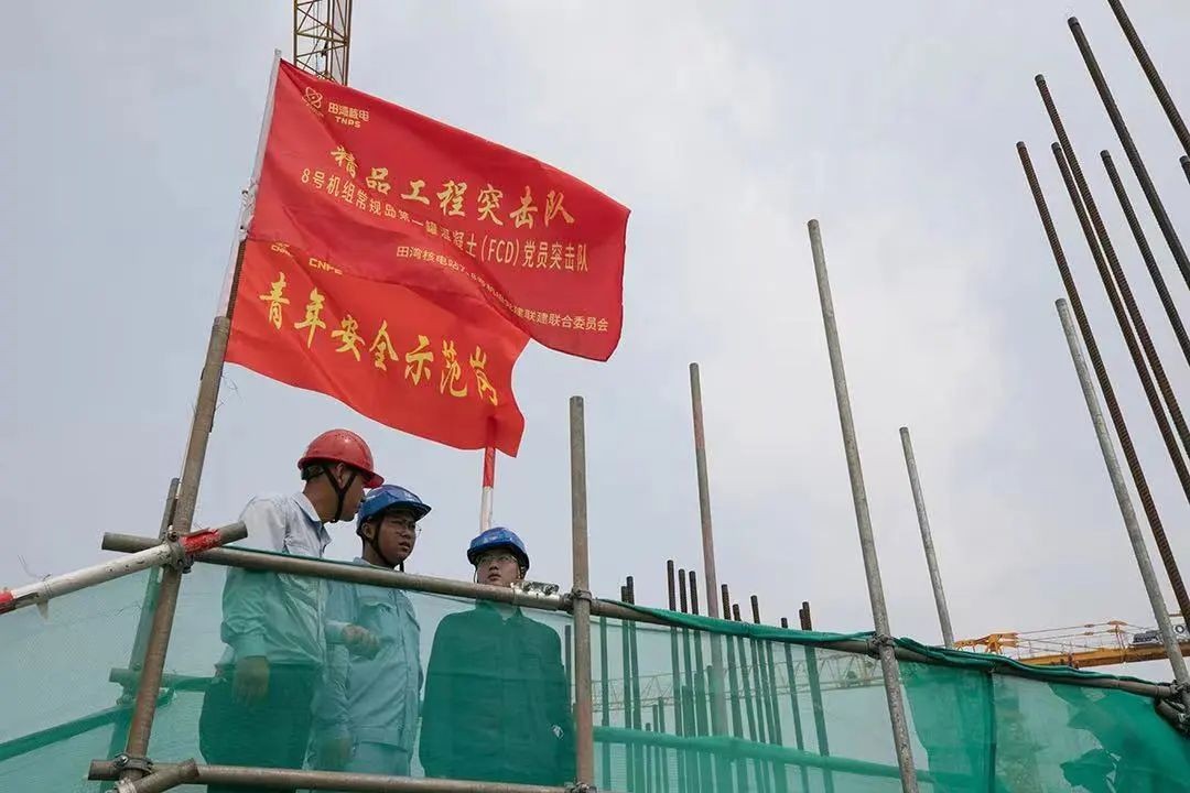 爬過陡峭的臨時通道,進入到即將“蓋帽”的安全殼內,看到多面突擊隊旗幟在風中飄揚,這是田灣核電7、8號機組建設中的常態。原來,為了更好地協調各方面力量,江蘇核電堅持“價值黨建”,打造“標桿工程突擊隊”和“精品工程突擊隊”品牌,以實際行動發揮黨建聯建的引領保障作用。