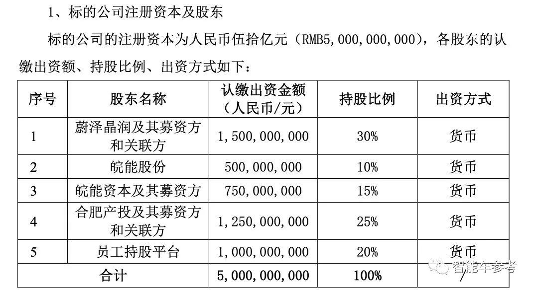 而表中序號1顯示的“蔚澤晶潤及其募資方和關聯方”認繳出資15億元,持股比例為30%——剛好能與路透社報道的“蔚來資本+蔚來汽車”的出資額和持股比例對上。
