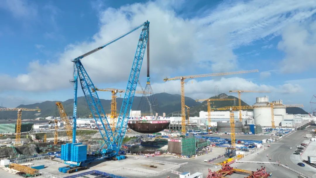 當天上午5時46分,吊裝總指揮部下達指令,2600噸吊車開始起吊。經過試吊、起升、回轉、落鉤等動作,8時58分,安全殼底封頭準確就位,整個吊裝過程安全受控。
