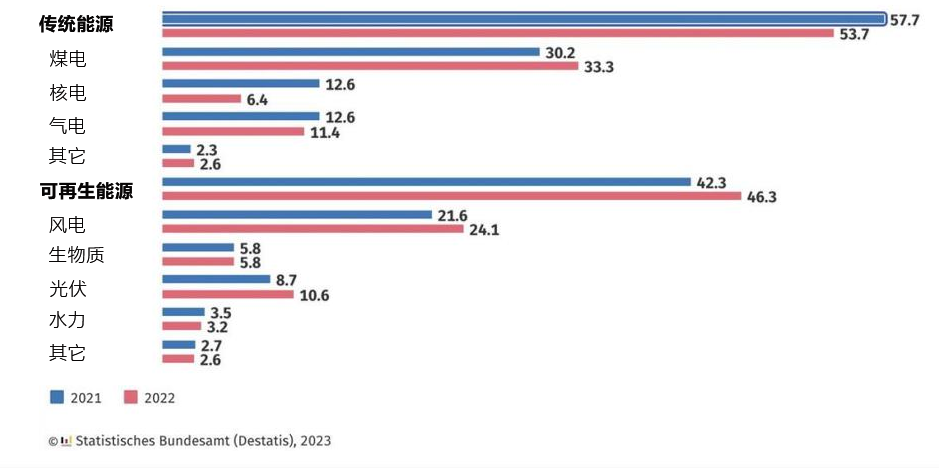 圖1 2021年、2022年德國電源結構比較