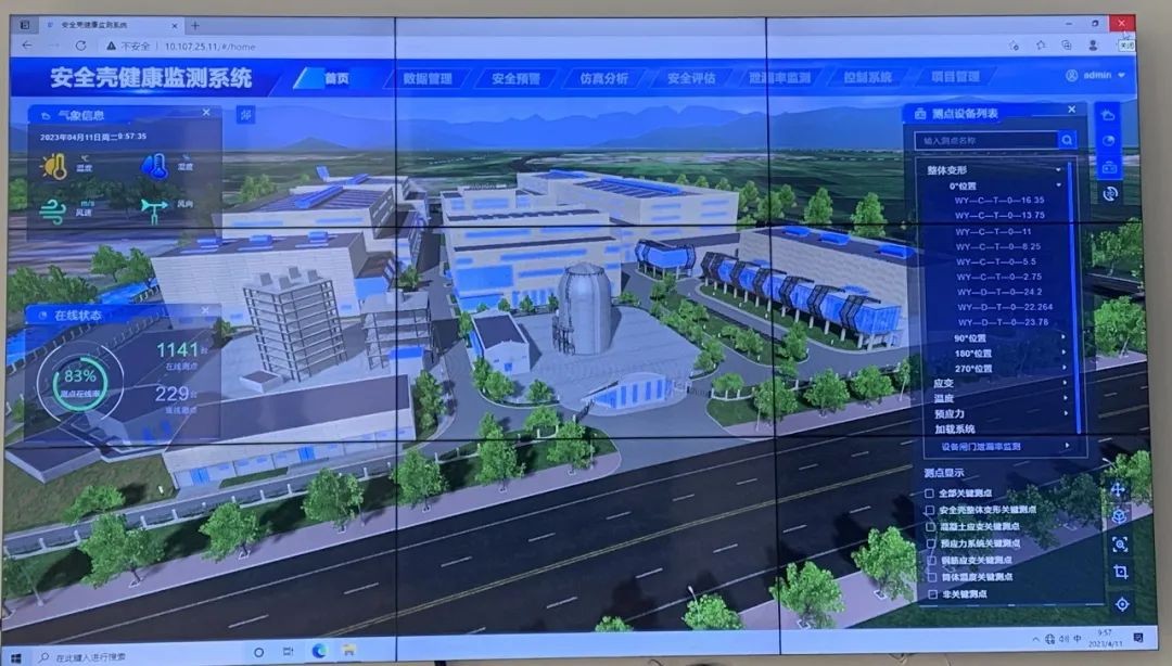 為貫徹落實公司數字化戰略部署,本次試驗采用了多項新工藝、新技術。開發了智能監測平臺,實現智能輔助、智慧管理,監測平臺針對安全殼模型的1500個傳感器進行實時監測,收集加載過程中的應變、位移、預應力、溫度以及殼內環境等數據,并對檢測數據實時分析、預警,與智能終端深度融合,打造智慧試驗新體系;對于裂縫測量,引入了無人機高精度攝像頭采集數據、圖像識別處理等技術,有效的節省了人力;創建了VR展廳,引入虛擬現實技術,實現空間復刻,可沉浸式漫游在安全殼模型里;應用了智能鋼絞線技術,其幾何、力學和傳感性能均達到課題既定目標,具有易于施工、高精度、高耐久性、高成活率的有點,為核安全殼結構全壽命周期提供可靠的智能建造和智慧運維策略。