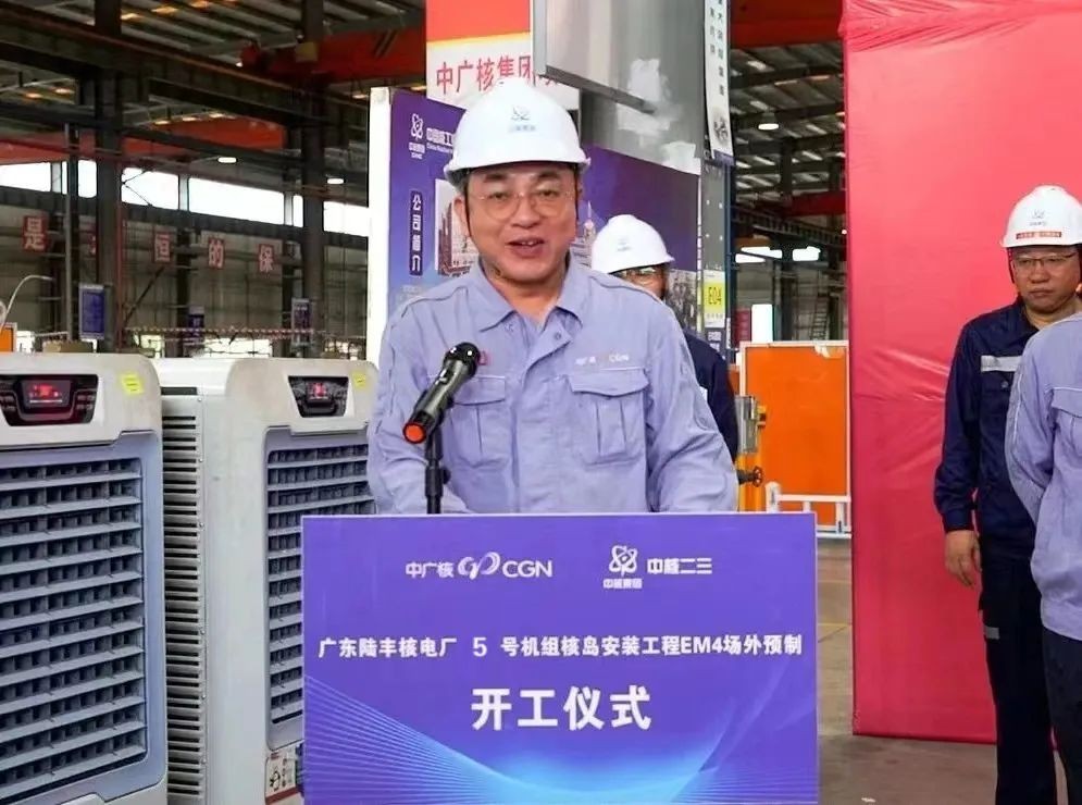 中廣核陸豐核電有限公司副總經(jīng)理張士朋宣布開工陸豐核電作為廣東省粵東地區(qū)首個核電項目,是積極響應(yīng)國家核電發(fā)展“十四五”規(guī)劃和2035年遠景目標綱要“積極有序推進沿海三代核電建設(shè)”重要核電項目。EM4場外預(yù)制工作作為核島安裝工程先行工作,是保障后續(xù)核島現(xiàn)場安裝目標節(jié)點如期完成的基礎(chǔ)。