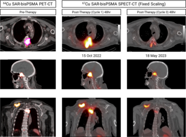 “最近,我們用Clarity優(yōu)化的SAR-bisPSMA產(chǎn)品進(jìn)行的SECuRE試驗(yàn)的隊(duì)列1在轉(zhuǎn)移性去勢(shì)耐受性前列腺癌癥(mCRPC)患者中完成。這些患者接受了67Cu SAR-bisPSMA治療,最低劑量為4GBq。臨床醫(yī)生根據(jù)EAP要求進(jìn)行額外的67Cu SAR-bisPSMA治療周期,早期數(shù)據(jù)表明,最低劑量的67Cu SAR-bisPSMA對(duì)病變有積極影響,SPECT-CT圖像和患者前列腺特異性抗原(PSA)水平的降低證明了這一點(diǎn)。“