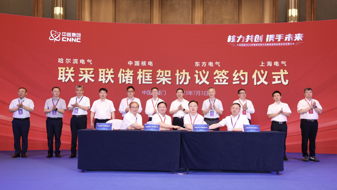 中核集團將秉承開放協同理念,與在座各位建立和維護長久、緊密伙伴關系,不斷構建并完善“強核心、大協作”的核工業產業協同體系,與合作伙伴共謀、共建、共保供應鏈的安全穩定,共享產業鏈上下游一體化協同發展成果,共創核工業發展的新篇章!