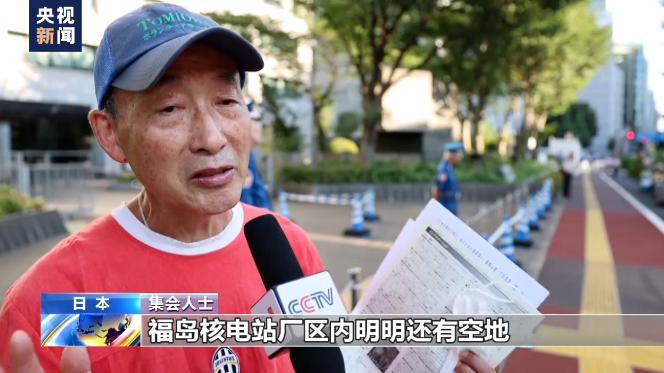 集會人士:福島核電站廠區(qū)內明明還有空地,可以用于放置核污染水儲罐,對于政府和東京電力公司來說,并沒有必須將核污染水排海的必然性。