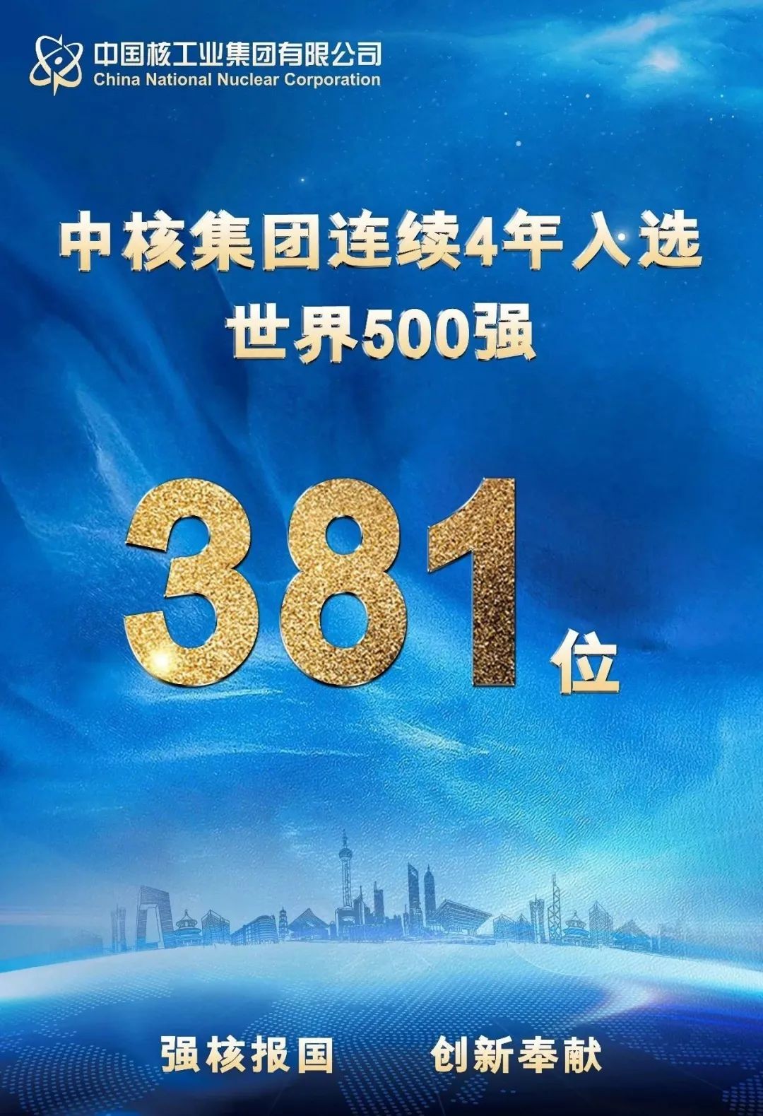 北京時間8月2日,《財富》雜志公布最新一期世界500強排名,中核集團連續(xù)四年入選世界500強,位列第381位。