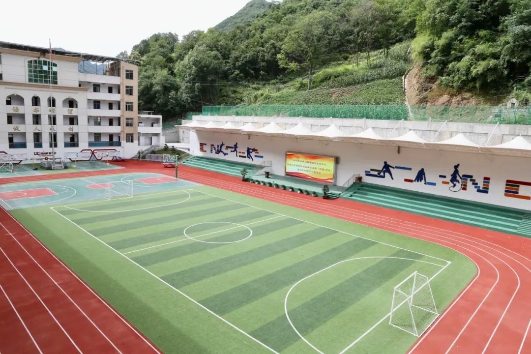 夏日的陽光播撒在紅綠相間的操場上,夏日的暖風也在吹動著操場上的樹叢,遠處幾名學生在嶄新的跑道上肆意奔跑著,白河縣構朳初級中學校園里的一切都看著那么新、那樣亮。