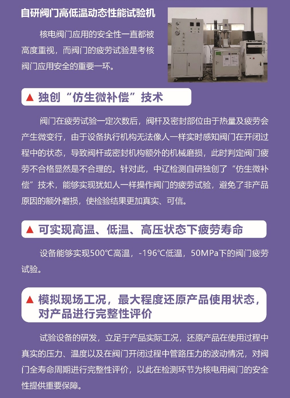 公司獲得中國合格評定國家認可委員會(CNAS) 認可、檢驗檢測機構資質認定(CMA)、中國船級社(CCS) 認可、核工業質量管理體系認證、武器裝備質量管理體系認證,已廣泛服務于核電、輸變電、航空航天、軌道交通、工程機械、石油石化、船舶海工、氫能源、半導體及軍工等領域,并形成了建筑隔震柔性管路檢測技術、儀表管閥件檢驗檢測、波紋管高低溫內外介質工況檢測、雙維運動補償器測試、管路燃燒測試、航空零部件阻燃檢測、緊固件測試與分析等多項專有技術及裝備,獲得國內外客戶廣泛認可。