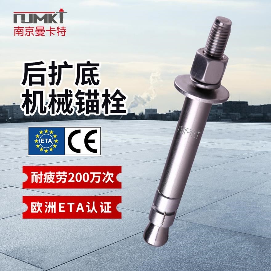 曼卡特后擴底機械錨栓,是由鎖鍵、套管、螺桿、彈墊、平墊、螺母組成的一種金屬機械錨栓。產品通過國檢耐疲勞200萬次以上,國檢3100小時鹽霧未生銹。通過國檢抗震防松認證和歐盟“ETA”機構組織的性能測試認證。
