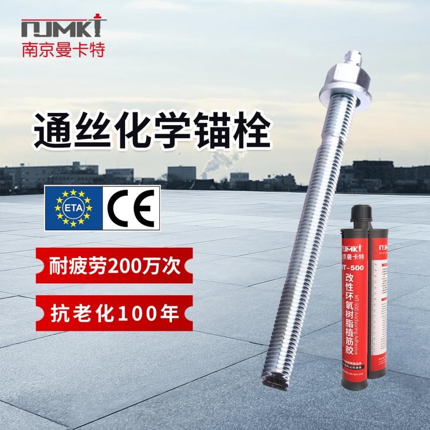 曼卡特通絲化學錨栓,是由平墊,螺母,螺桿組成的一種金屬化學錨栓,配合植筋膠使用。高強粘接力,適用于大尺寸鋼筋、螺桿,效果如同預埋;產品具有杰出的耐久性、抗焊性。產品通過抗疲勞200萬次試驗,耐火性能120min測試,通過歐盟“ETA”機構組織的性能測試認證。