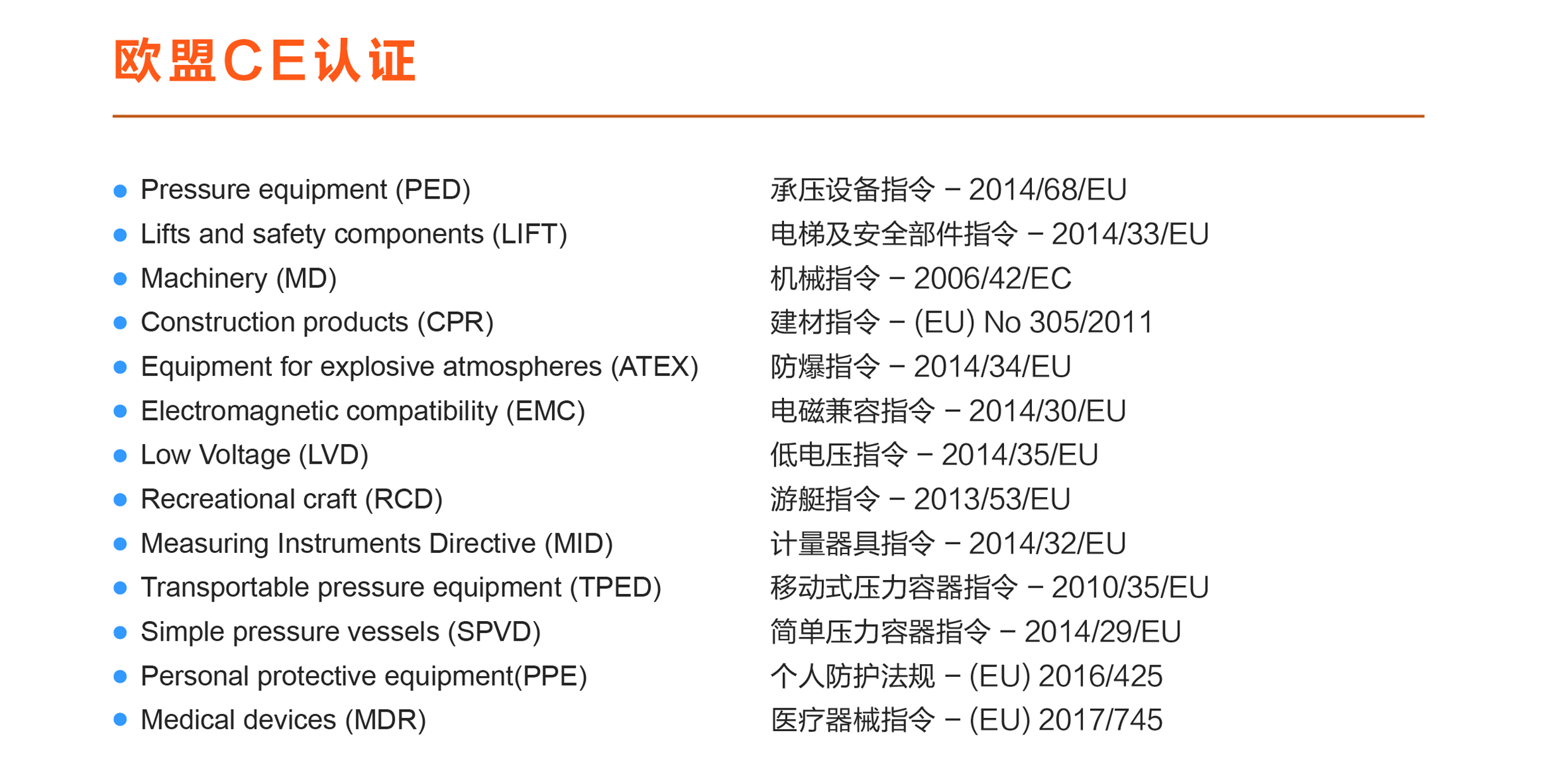 沃證為客戶提供歐盟CE認(rèn)證、俄羅斯聯(lián)邦海關(guān)聯(lián)盟CU-TR認(rèn)證(EAC)、國際焊接認(rèn)證、英國UKCA認(rèn)證、國際符合性認(rèn)證等服務(wù),涵蓋機(jī)械、電氣、承壓設(shè)備、電梯、建材、軌道車輛、游艇、防爆產(chǎn)品等眾多工業(yè)領(lǐng)域。憑借豐富的經(jīng)驗(yàn),為國內(nèi)企業(yè)解讀國際標(biāo)準(zhǔn),讓“中國制造”更具全球競爭力。