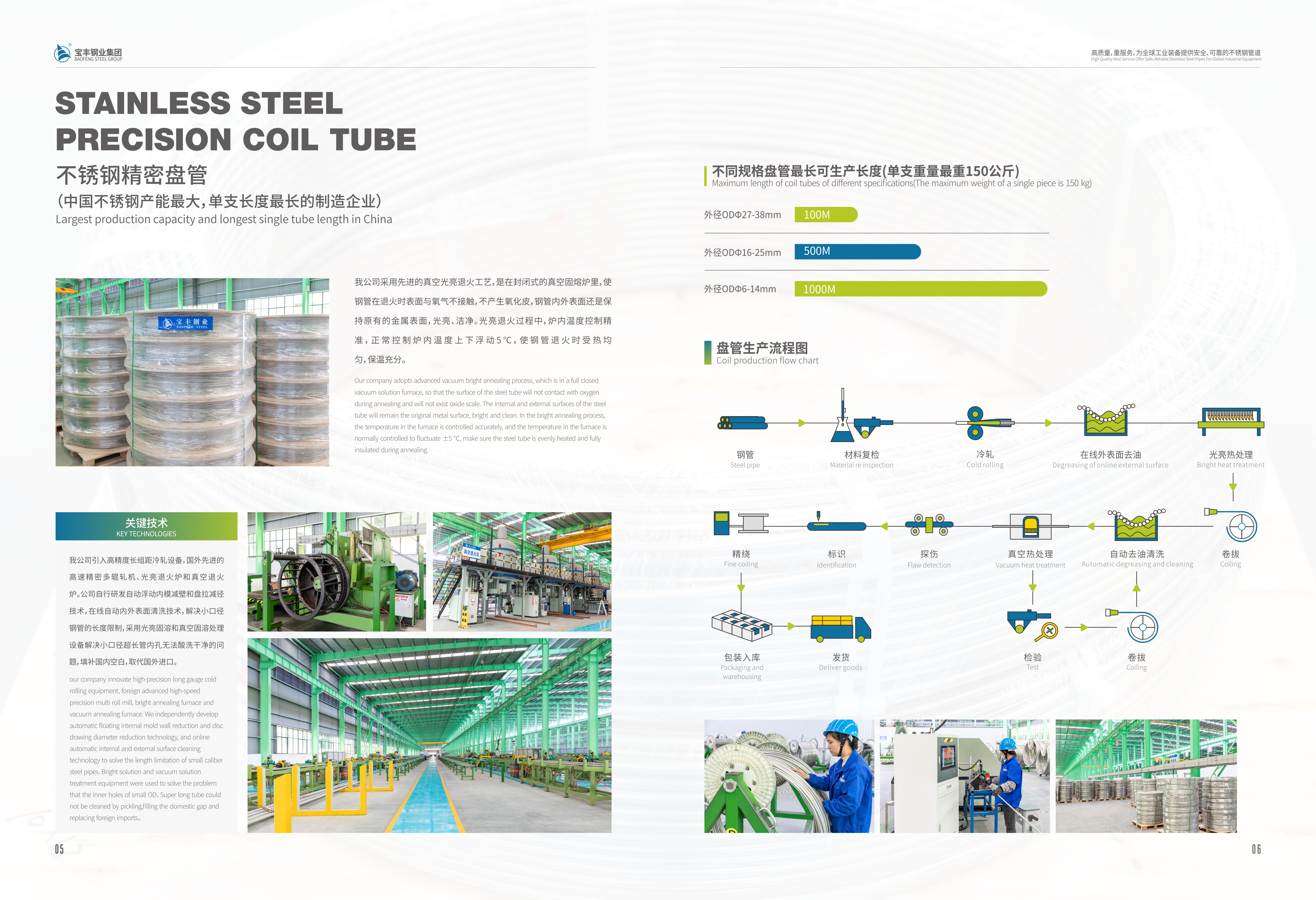 公司專業生產高溫(鎳基)合金、奧氏體、雙相鋼、超級奧氏體不銹鋼等系列的無縫管、焊管、換熱管、盤管、精密管等產品。公司裝備年產無縫鋼管3萬噸、焊管2萬噸,不銹鋼盤管1萬噸,不銹鋼換熱管2.5萬噸,可根據客戶需求,按GB、ASTM、JIS、DIN等標準生產Φ6~Φ762×0.5~70mm不銹鋼無縫管、Φ8~Φ3000×0.5~80mm不銹鋼焊接管、Φ3.18~Φ38x0.5-3mm不銹鋼盤管等。