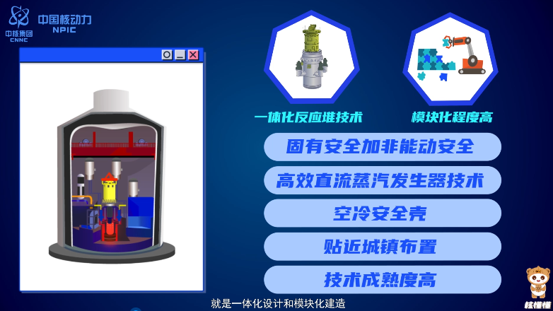 一體化設計,即將反應堆多個核心設備集合在一起。如果說傳統大堆是由屏幕主機鍵盤鼠標組成的臺式電腦,小堆“玲龍一號”就是一體式筆記本,輕巧、便捷、安全。