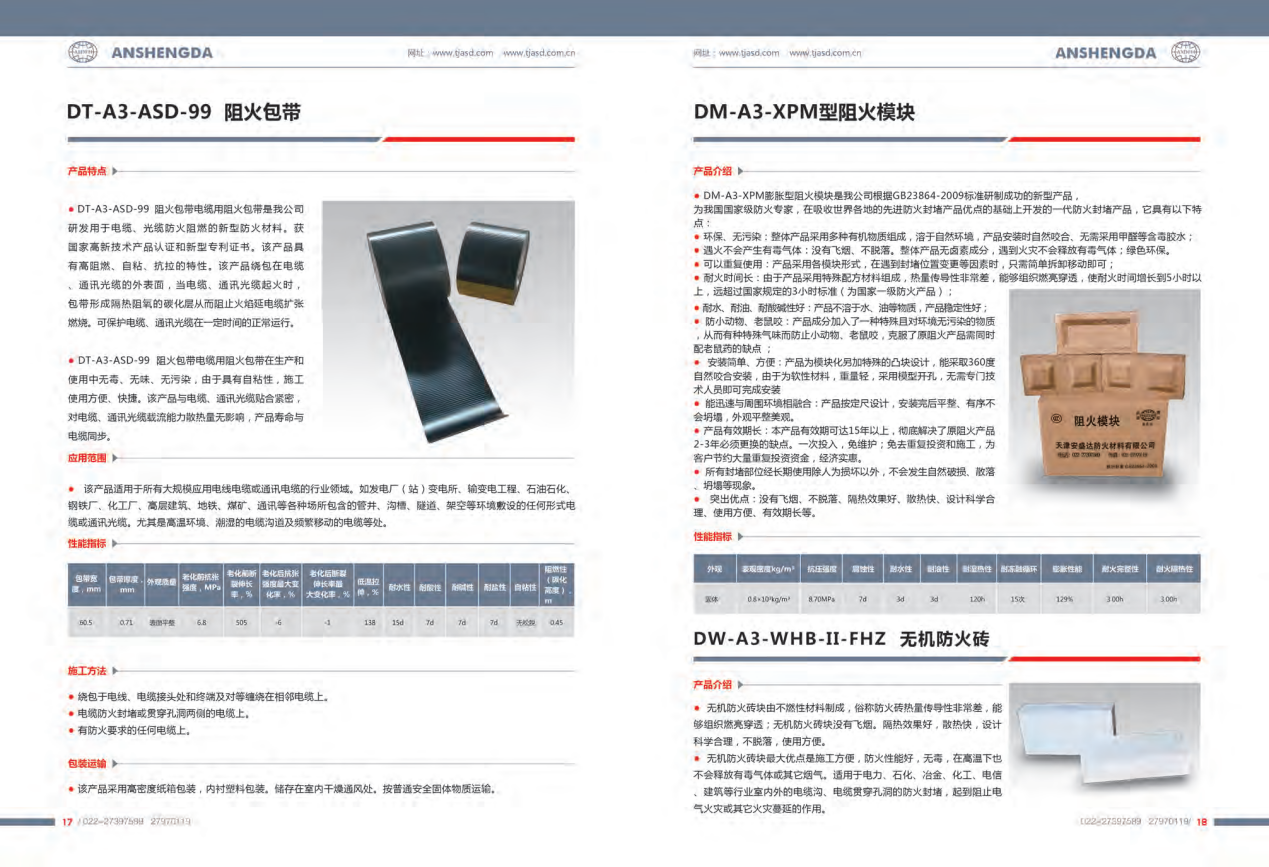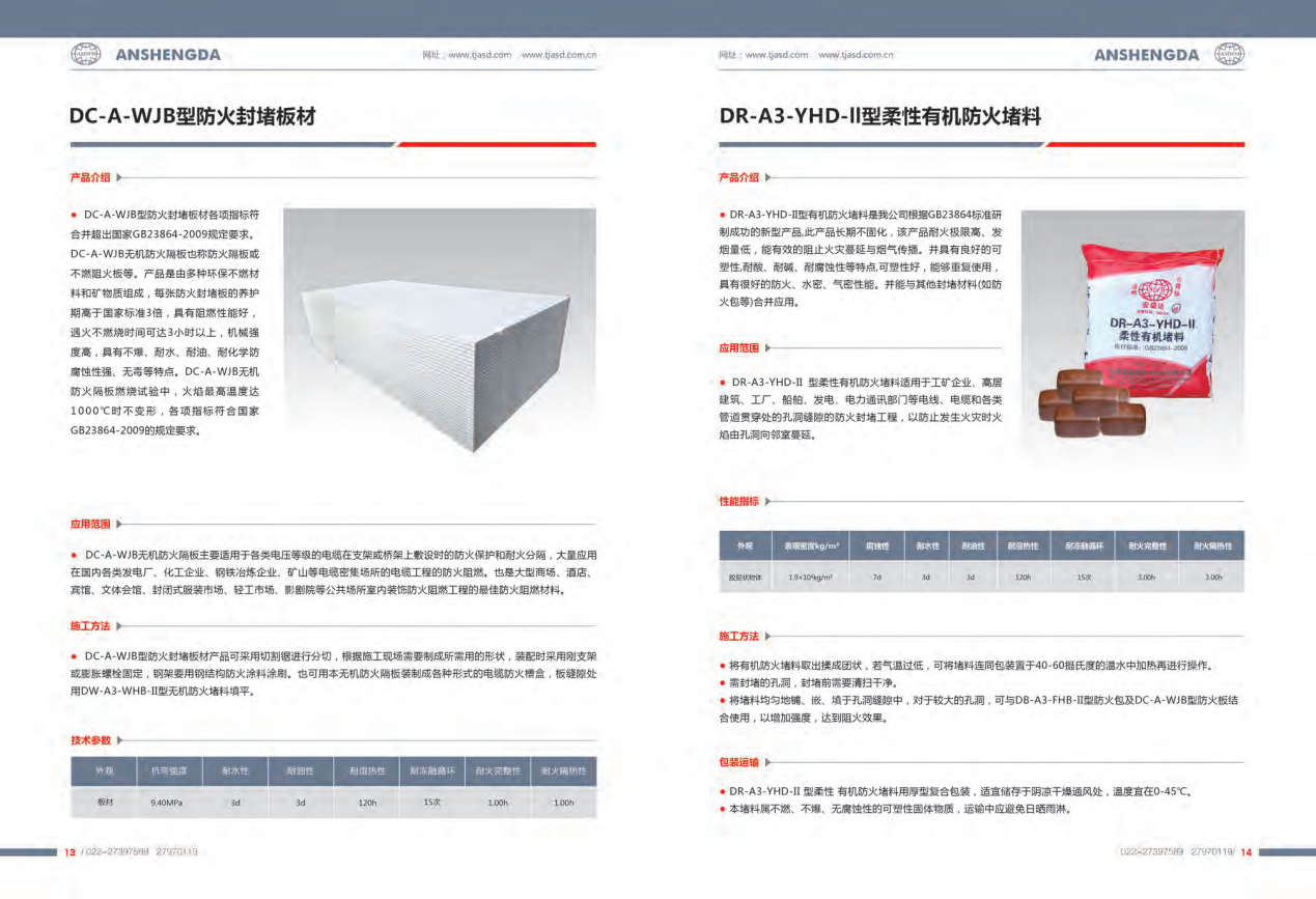 主營產品:防火包(阻火包)、有機防火防火堵料(防火泥)、無機防火堵料、防火隔板、防火涂層板、復合鋼制防火板、阻火模塊、阻火包帶、防火密封膠、高分子防火封堵劑、縫隙防火封堵、防火布、防火毯(滅火毯、)、防火包裹材料、防爆膠泥、電纜防火涂料、鋼結構防火涂料、隧道防火涂料、防火堤涂料、飾面防火涂料、木材專用防火涂料等產品。