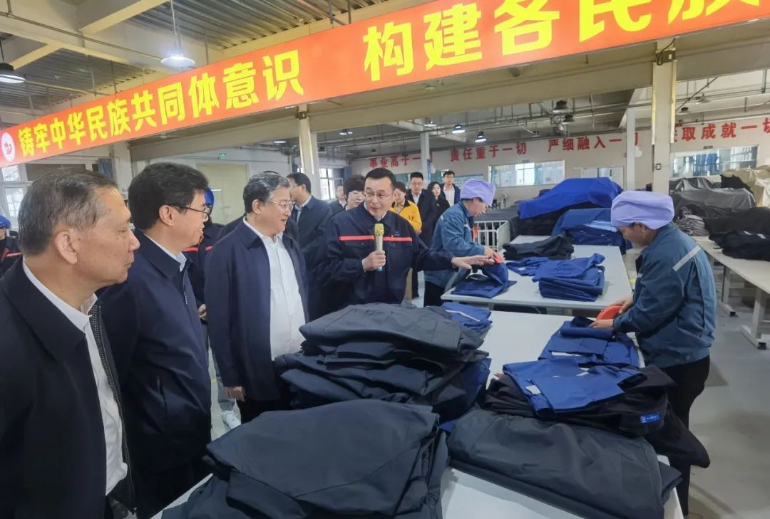在寧夏同心(中核)清潔能源產業(yè)園,余劍鋒先后參觀了英利能源光伏組件全自動智慧化生產線、同心防護科技公司服裝生產車間,詳細了解了工藝流程、設施設備、企業(yè)黨建和生產經(jīng)營等情況,并聽取了中核匯能引進中核熱鹽、上能電氣等產業(yè)落地情況,充分肯定了中核集團“六新一體”新能源產業(yè)幫扶格局對同心縣清潔能源產業(yè)鏈建設的引領作用。同時,他還鼓勵當?shù)芈毠ひ獔远òl(fā)展信心,“幸福是奮斗出來的!”