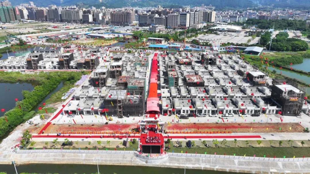 活動中,賴文輝、趙明等領導嘉賓共同為黃埠鎮龍子新村落成剪彩。