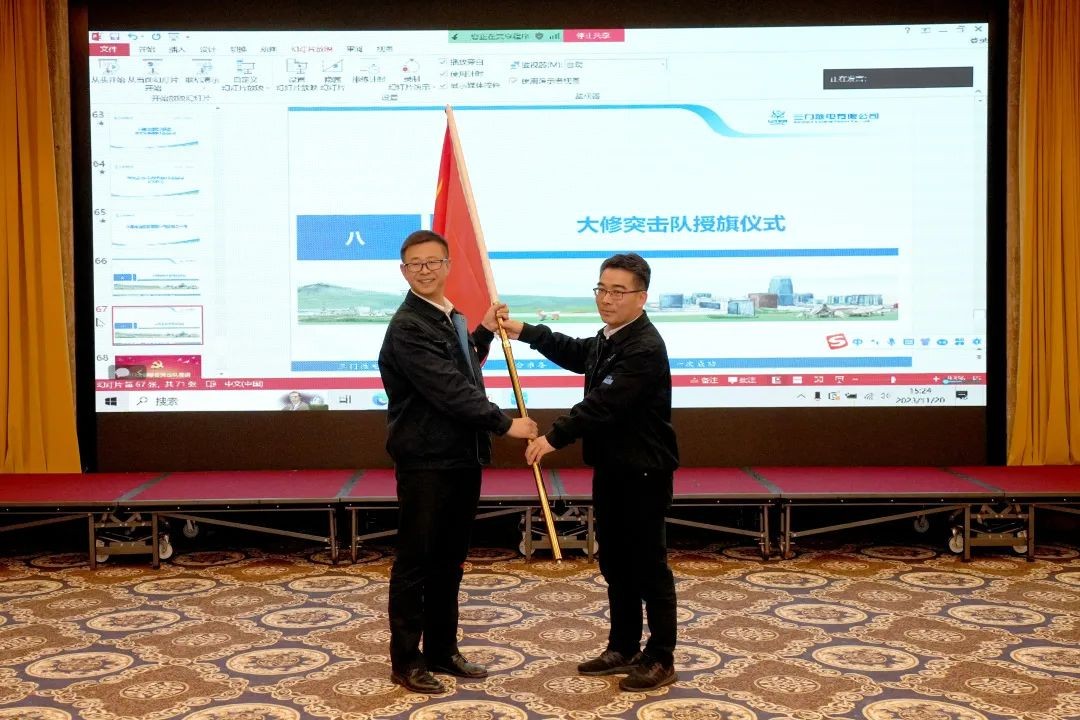會(huì)議最后,公司領(lǐng)導(dǎo)為大修聯(lián)合突擊隊(duì)授旗。203大修成立多支大修突擊隊(duì),為203大修吹響了沖鋒號(hào)。