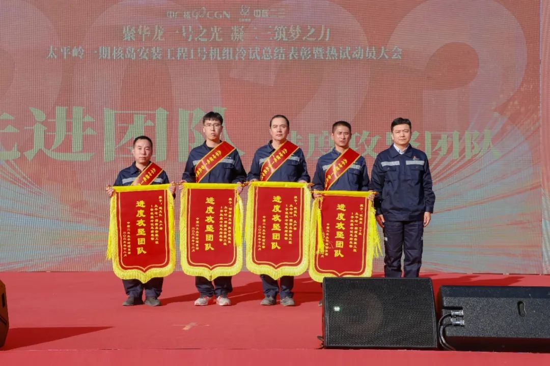 會(huì)議總結(jié)了2023年度太平嶺項(xiàng)目部工作,對(duì)2024年1號(hào)機(jī)組熱試進(jìn)行了部署和安排,表彰了1號(hào)機(jī)組冷試先進(jìn)集體53個(gè)、先進(jìn)個(gè)人228名,并舉行熱試攻堅(jiān)授旗儀式為14支攻堅(jiān)隊(duì)授旗,熱試攻堅(jiān)隊(duì)代表作表態(tài)發(fā)言。