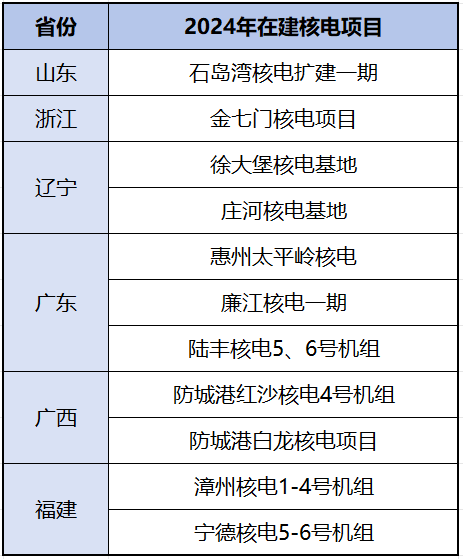 2024年推進(jìn)漳州核電1-4號機(jī)組、寧德核電5-6號機(jī)組項目建設(shè)。