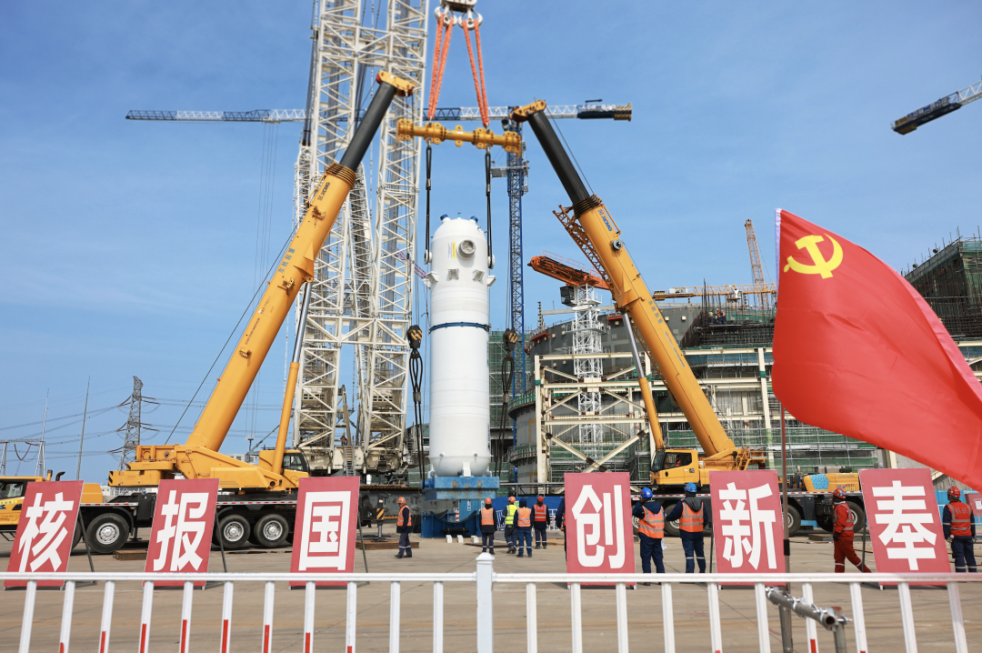 3月6日13時19分,歷時1小時42分鐘,由中核五公司承建的海陽核電項目3號機組反應堆穩壓器順利吊裝就位,為后續波動管焊接及腔室大宗材料安裝工作的全面開展創造了良好先決條件。