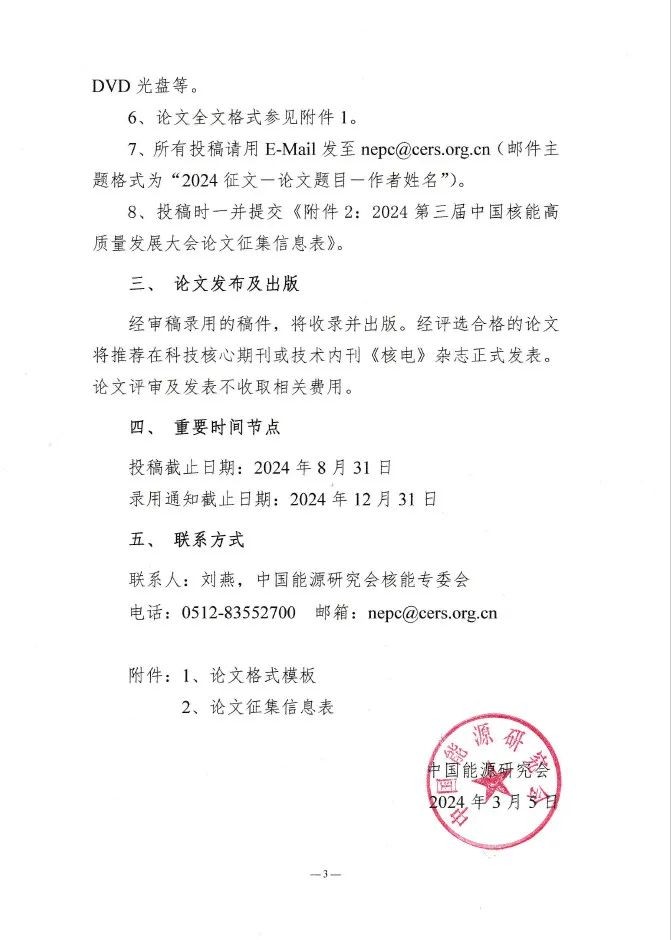 2024第三屆中國核能高質量發展大會第一輪征文通知