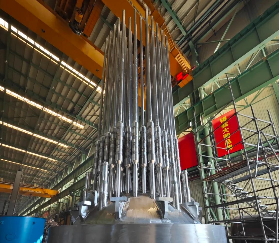 在三門核電二期工程核島里,有個高達12米、直徑5米多、重量接近400噸的大家伙,叫做反應堆壓力容器。它的本領可大了,肚里裝著核燃料,核反應就在這里發生,產生巨大能量,號稱“超級熱水壺”。水在這里將核燃料裂變產生的能量吸收,溫度達到300多攝氏度,通過蒸汽發生器將熱能轉換成蒸汽,送往汽輪發電機。可是你知道這個大家伙是怎么造出來的嗎?
