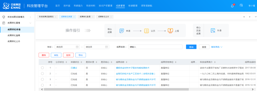 中核集團(tuán)科技管理平臺(tái)成果轉(zhuǎn)化模塊