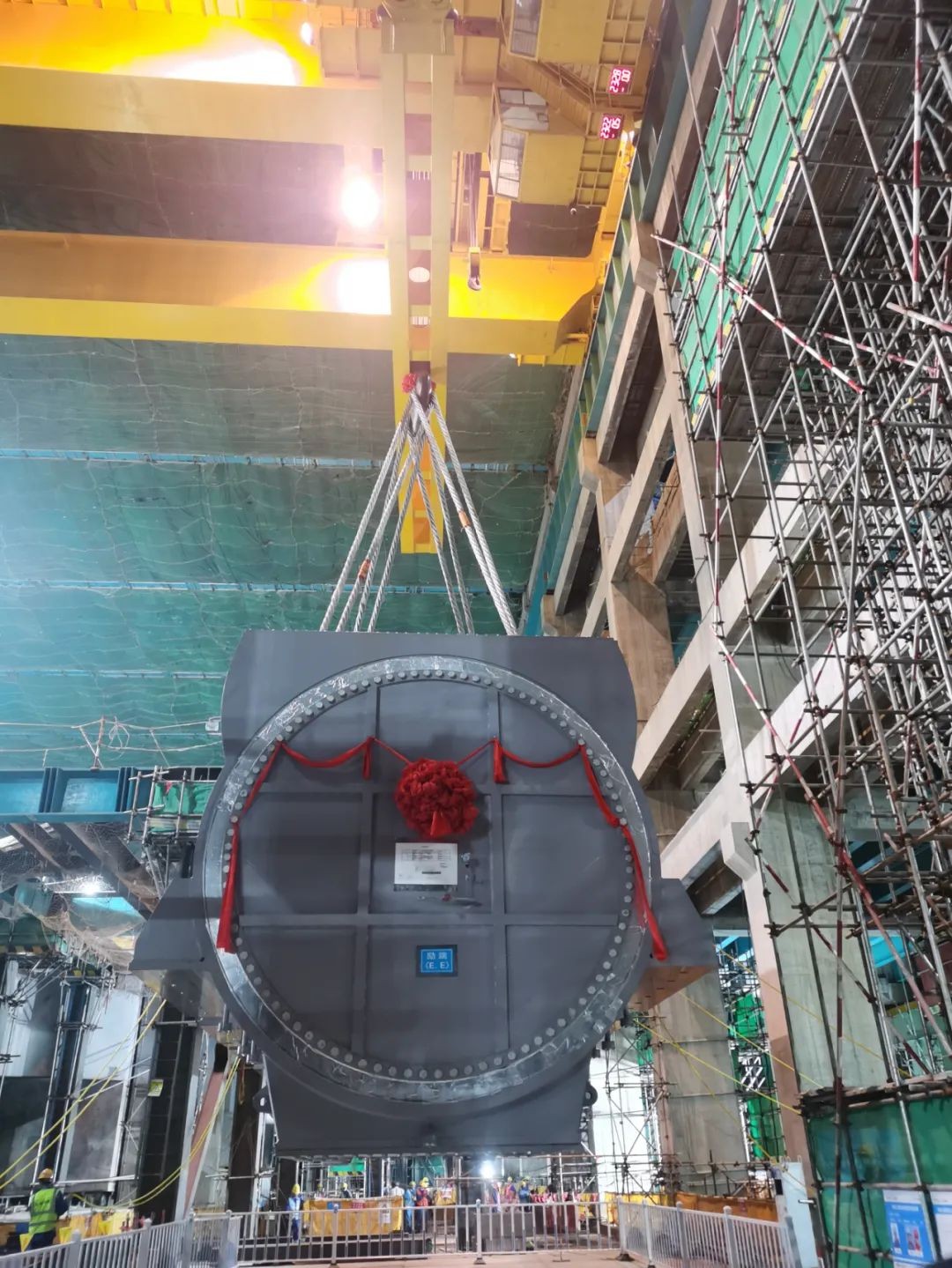 我是發電機定子,2024年3月8日在東方電機廠出生,前天,我坐了好久的車和船,終于到達了我朝思暮想的新家——三澳核電基地。4月9日20點05分,我戴著大紅花,聽著喜慶的鞭炮聲,健壯的身軀被吊車緩緩吊至我的工作崗位——汽輪機廠房9.5米平臺。說到這,各位看官是否對我有些好奇呢?