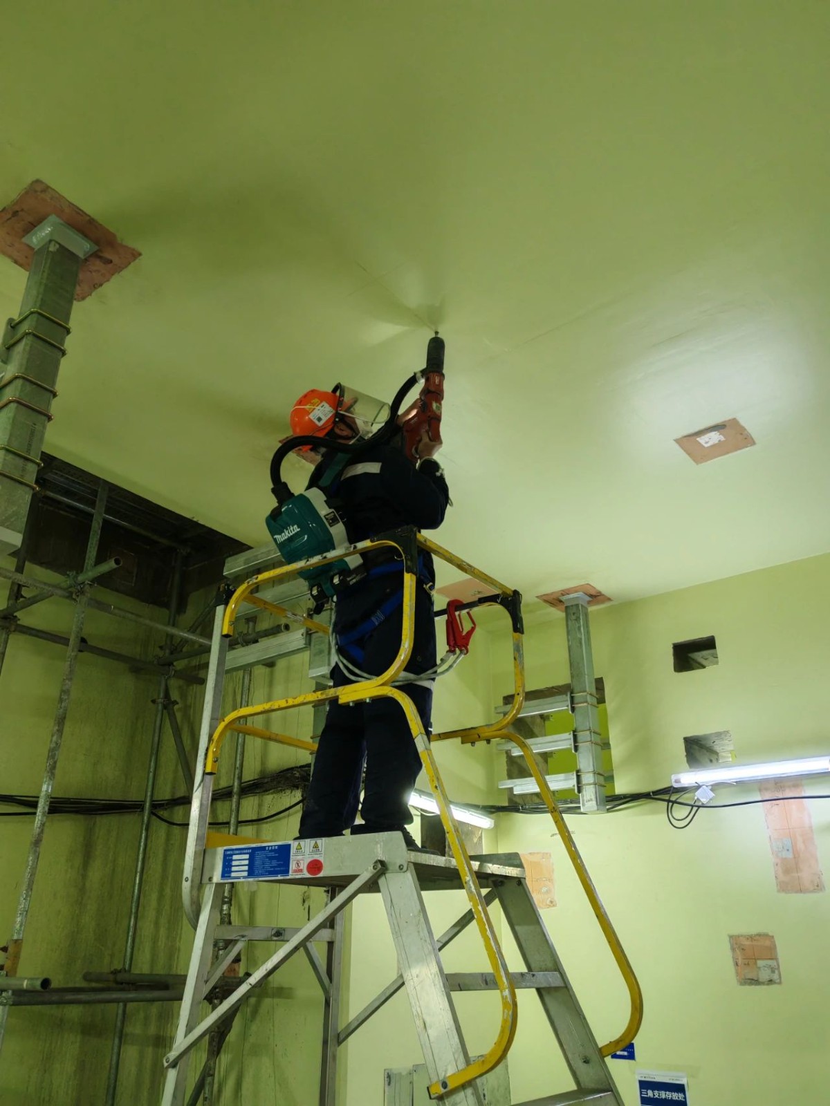 背負(fù)式吸塵器打孔接灰裝置現(xiàn)場(chǎng)施工圖