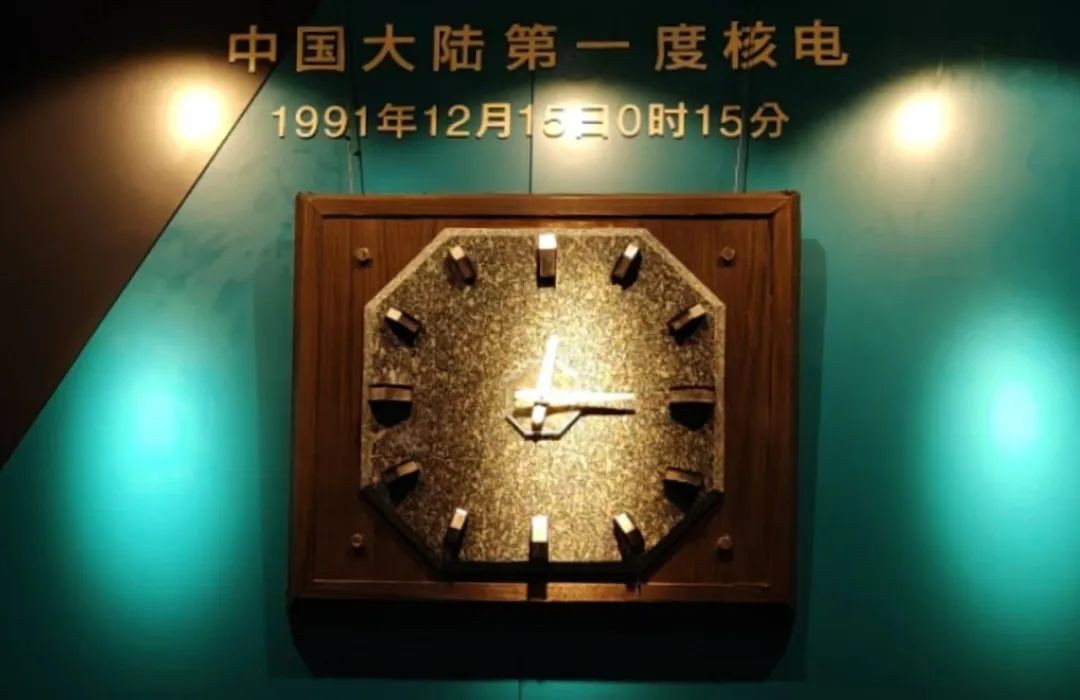 在中國核電科技館的墻上,一塊石英鐘端正地掛著,它外表四方、邊長兩尺,以深棕色的木框鑲嵌,看上去頗具年代感。在館內(nèi)略顯昏黃的燈光下,一束光打在時針和分針上,指針定格在0時15分。它記錄著三十余年前的1991年12月15日秦山核電30萬千瓦核電機組成功并網(wǎng)發(fā)電的歷史性瞬間。那一刻,中國核電事業(yè)翻開了嶄新的一頁,邁出了從無到有的重要一步。