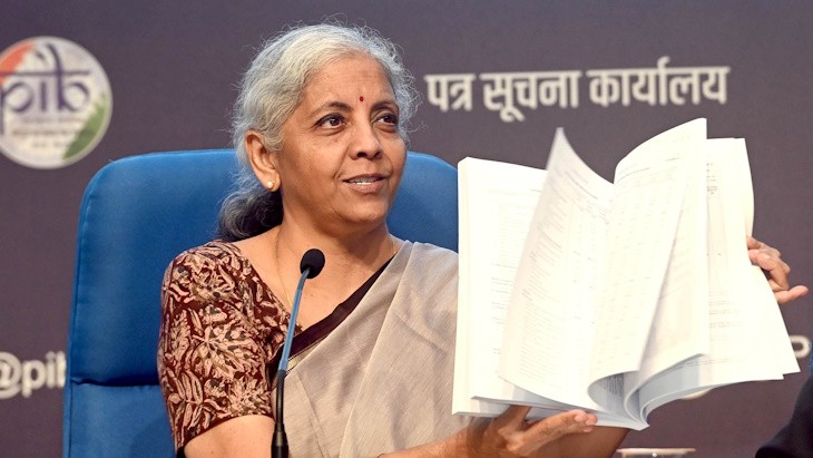財政和企業事務部長 Nirmala Sitharaman 于 7 月 23 日出席預算發布后新聞發布會 (圖片來源:新聞信息局)