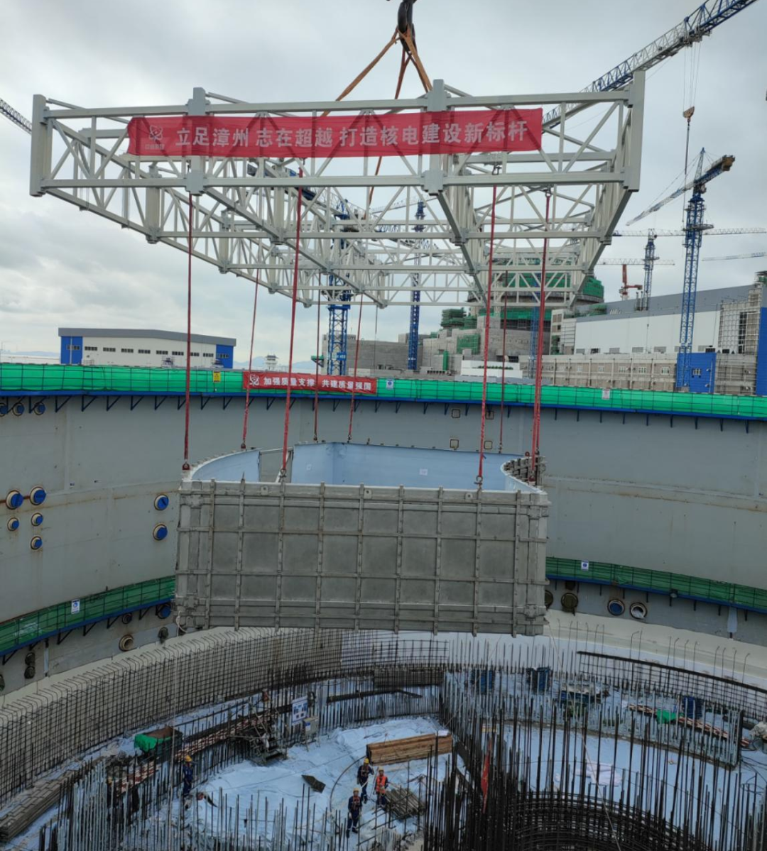 9月7日,“華龍一號”漳州核電3號機組核島反應堆廠房內置換料水箱不銹鋼模塊組吊裝成功,首次實現當日內連續完成三次大件吊裝工作,這是繼3號機組鋼襯里模塊吊裝后完成的首批不銹鋼模塊,為3號機組反應堆廠房內部結構主線施工順利進行提供了有力保障。