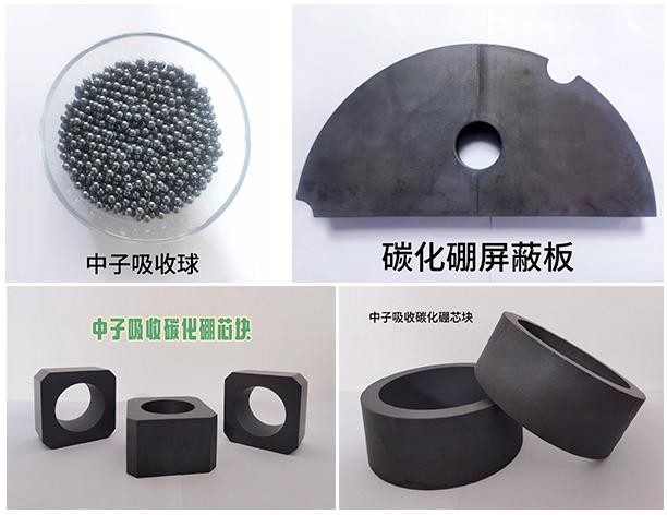 碳化硼(B4C)具有良好的中子吸收能力,其中子俘獲截面積高,俘獲能譜寬,10B的熱截面高達(dá)3750barn(barn-核反應(yīng)的截面單位, 1.0*10-24cm2),僅次于釓Gd、釤Sm、鎘Cd等少數(shù)幾種元素。同時(shí),相對(duì)于純?cè)谺和Gd而言,B4C造價(jià)低,不產(chǎn)生放射性同位素,二次射線能量低,廢料易于處理;而且耐腐蝕,熱穩(wěn)定性好,是國(guó)際上普遍接受的快中子吸收材料。目前廣泛用于核工業(yè)原子能反應(yīng)堆的屏敝板和中子吸收芯塊。
