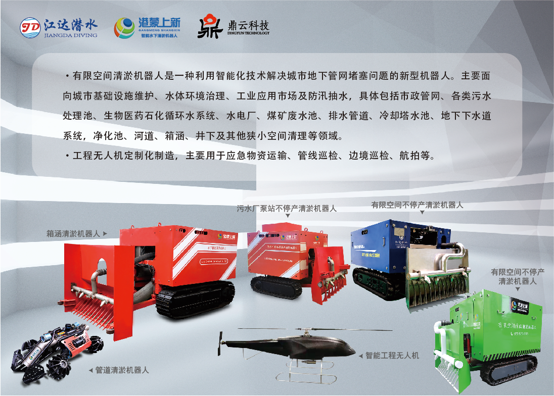 【產品描述】:有限空間清淤機器人是一種高度自動化的智能設備,專業設計用于在水下環境中進行清淤作業。這種機器人適用于多種場景,包括市政管網、各類污水處理池、生物醫藥石化循環水系統、水電廠、煤礦廢水池、排水管道、冷卻塔水池、地下下水道系統,凈化池、河道、箱涵、井下及其他狹小空間清理等領域。