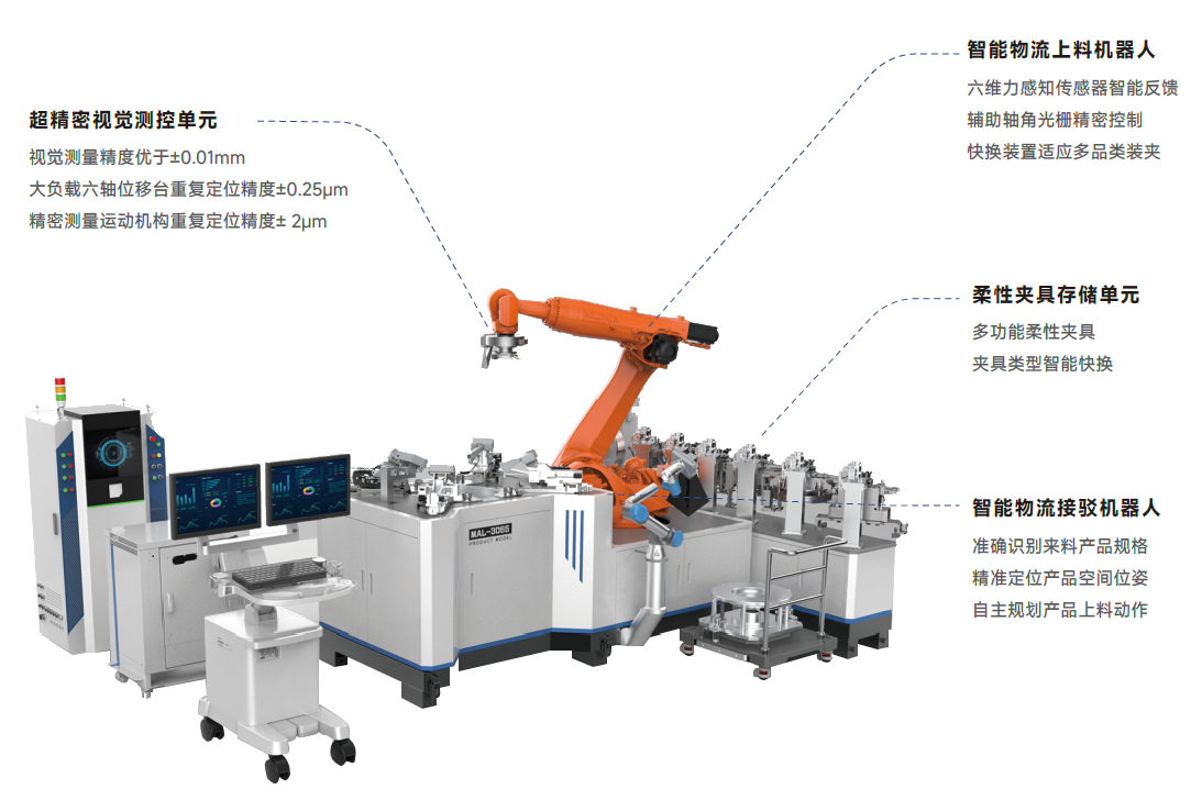 【主要特點】: *微米級運動精度和視覺測量精度實現(xiàn)超精密智能裝配。 *作業(yè)過程實時鏡像展示,“虛實結(jié)合”、“直觀”、“便捷”。 *視覺智能實現(xiàn)工件“認的準”、“抓的準”、“裝的準”。