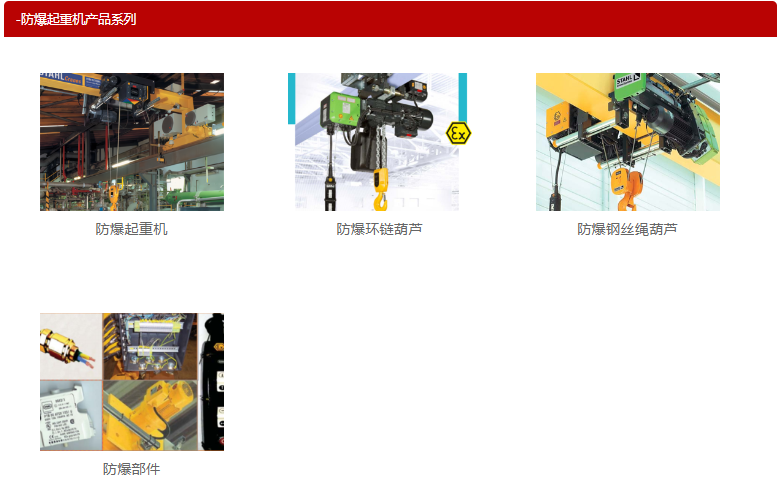 【產品類別】:防爆起重機、防爆環鏈葫蘆、防爆鋼絲繩葫蘆、防爆部件等