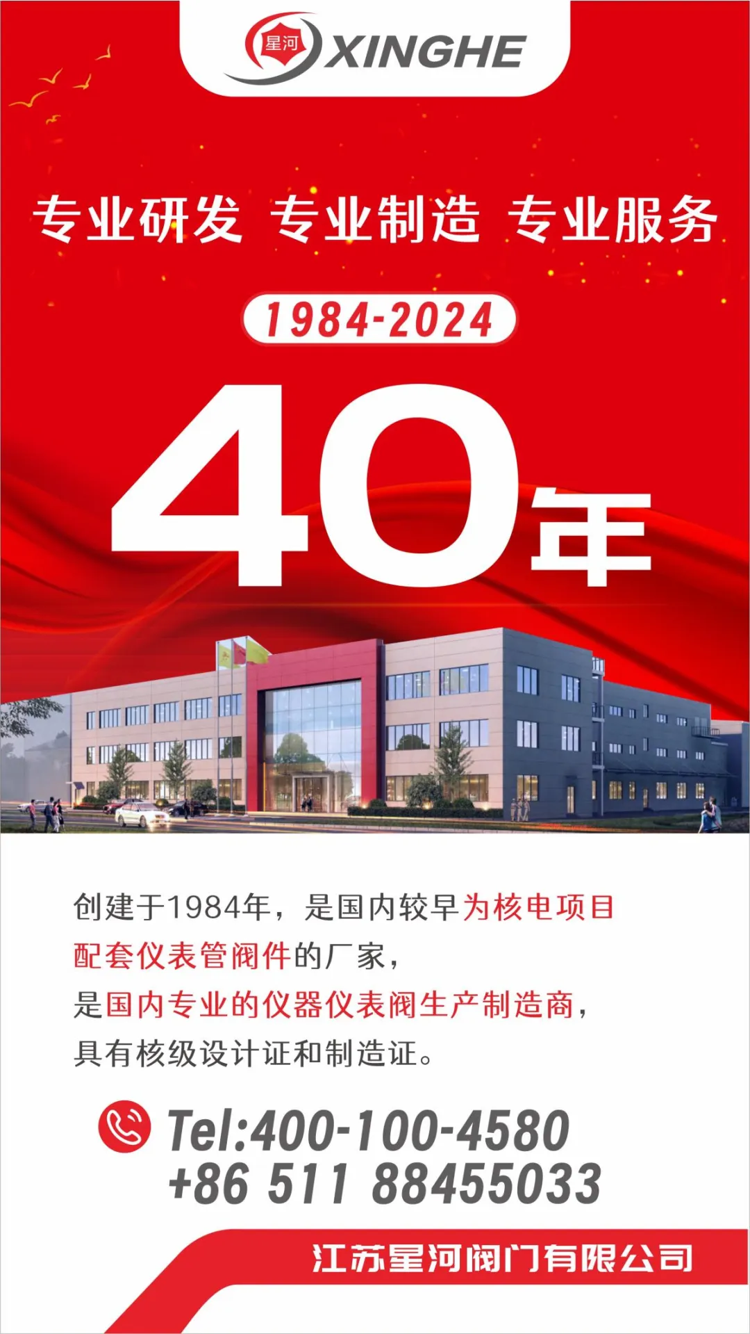 江蘇星河閥門有限公司創(chuàng)建于1984年,是國內(nèi)最早為核電項(xiàng)目配套儀表管閥件的廠家。公司于1999年即首次取得了民用核承壓設(shè)備制造許可證,并延續(xù)至今公司成立三十年來,一真專注并深耕于儀表管閥件行業(yè),通過不斷的技術(shù)創(chuàng)新,可靠的產(chǎn)品質(zhì)量以及持續(xù)滿足顧客要求的能力,使得產(chǎn)品在核電、石油、化工、天然氣、機(jī)車、氫能源、半導(dǎo)體等行業(yè)中得到廣泛應(yīng)用,贏得了優(yōu)質(zhì)的市場口碑。