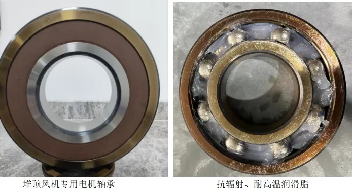 1、CAP1000、CAP1400堆頂風機電機用軸承:【產品描述】: 堆頂風機立式安裝,配套電機軸伸安裝風機輪轂,葉輪等部件,電機軸承需承受一定的軸向力;且能在環境溫度38℃~ 82℃情況下正常運行,要求2年內不損壞,不加油脂,不維護,并能承受一定輻照劑量。考慮到核工程的核污染和更換、維修的危險性,建議一個大修內堆頂風機電機用軸承整臺更換。