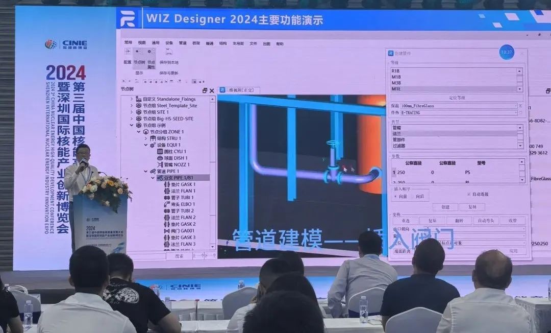 11月12日,深圳鵬銳信息技術(shù)股份有限公司參加2024第三屆中國核能高質(zhì)量發(fā)展大會暨深圳國際核能產(chǎn)業(yè)創(chuàng)新博覽會,會上公司核電事業(yè)部技術(shù)總監(jiān)-黃文強介紹了公司的最新產(chǎn)品,國產(chǎn)化工廠三維設(shè)計協(xié)同平臺WIZ DESIGNER 2024。