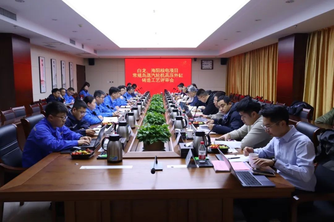 2024年12月24日上午,通裕重工組織召開白龍、海陽核電項目常規島蒸汽輪機高壓外缸鑄造工藝評審會。由哈爾濱汽輪機廠有限責任公司、哈爾濱電機廠有限責任公司、上海汽輪機廠有限公司、清華大學材料學院、上海交通大學材料科學與工程學院、西北工業大學材料學院、煙臺大學核裝備與核工程學院等單位的專家學者,以及山東核電有限公司、中電投廣西核電有限公司、上海核工程研究設計院有限公司等單位代表聯合組成的評審專家組蒞臨會議現場。公司黨委書記、董事長劉偉,副總經理、首席變革官梁吉峰以及鑄鋼事業部領導班子、技術團隊參加此次評審。經過評審,評審專家組一致認為:通裕重工通過研究與實踐,形成了核電常規島蒸汽輪機高壓外缸的鑄造工藝方案,方案設計合理、可實施性強,可以用于核電常規島蒸汽輪機高壓外缸的生產。