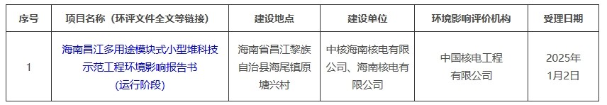 生態環境部關于2025年1月2日建設項目環境影響評價文件受理情況的公示(核與輻射)