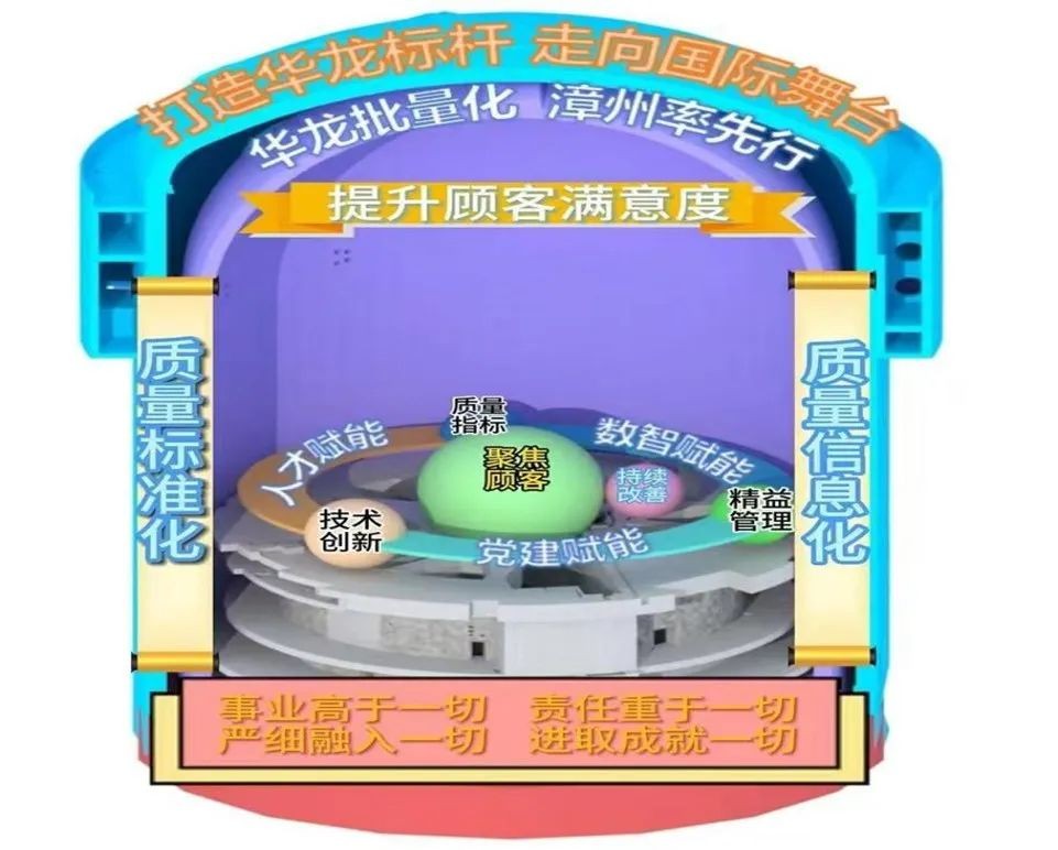 自項目建設以來,中核工程漳州項目部堅持安全第一、質量第一,始終秉持“華龍批量化,漳州率先行”的總承包理念,全面落實集團公司“六大控制七個零”管理要求,打造“華龍一號”品牌建設。堅持整體協同,推動質量信息化、智能化,以卓越績效引領,創新發展,強化建設全鏈條質量管理;通過開展技術攻堅、強化精益管理,推進“華龍一號”批量化建設過程持續創優,實現項目管理從“符合法規要求”到“關注績效”,再到“追求卓越績效”的不斷提升。