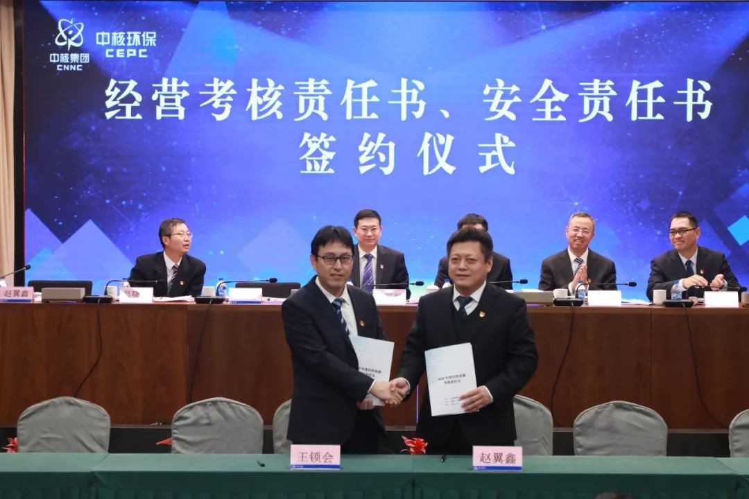 會上,對獲得中核環(huán)保2024年度業(yè)績突出貢獻(xiàn)獎、環(huán)創(chuàng)獎、董事長/總經(jīng)理獎和“整體·協(xié)同”年十大標(biāo)桿項目的獲獎代表進(jìn)行了表彰;簽署了中核環(huán)保2025年度經(jīng)營業(yè)績考核責(zé)任書和安全環(huán)保責(zé)任書。